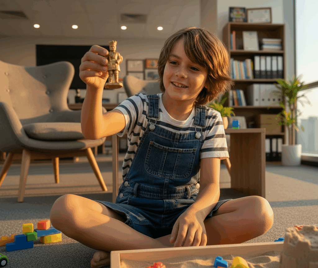 En thérapie par le jeu non directive, notre rôle de thérapeute, c’est de créer l’espace sécurisé où cet état peut émerger. De faire confiance à l’enfant, à la sagesse de son système nerveux et de son corps qui savent, bien mieux que nous souvent, comment se réparer ; d’être connecté à l’enfant et d’accueillir pleinement ce qui émerge. Tout le reste c’est de la technique, ça vient en plus.